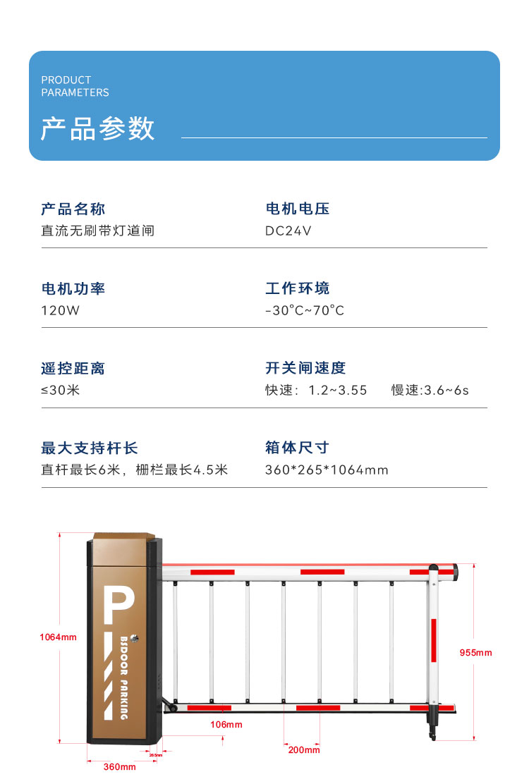 24V人體安全電壓(yā),無漏電風險 選配蓄電池支持斷電自動起杆功能